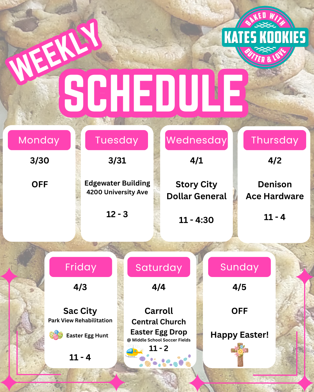 Cookie Wagon Weekly Scheule